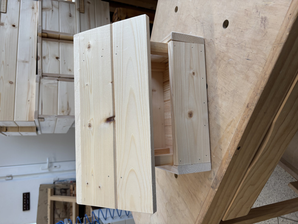 Krmítko je vyrobeno ze Severského smrku.Rozměry:délka-28,5 cm,šíře-18,5cm,výška-26cm,délka střechy-35cm,šíře střechy-23cm